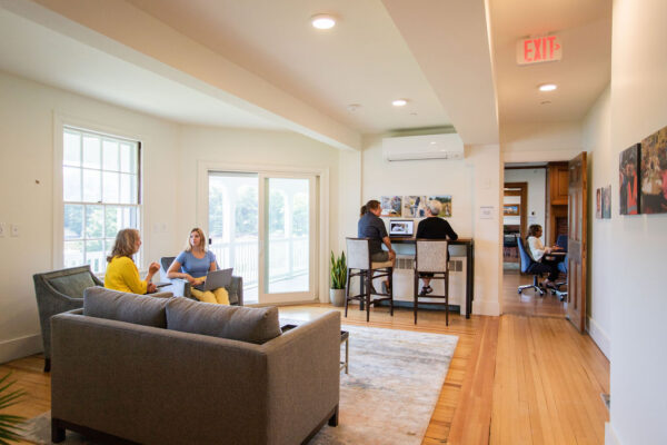 Nestled at Carey Cottage on 400 Little Harbor Road in Portsmouth, New Hampshire, GoodWork boasts a stunning facility that offers various meeting spaces for rent, with scenic views of Sagamore Creek. At the heart of GoodWork’s mission is a commitment to providing the community with affordable living, working, and meeting spaces. To that end, GoodWork provides two hours free in any meeting room to non-profits, then regular non-profit rates apply. This benefit can be used one time per month during regular business hours, Monday through Friday from 9 am to 5 pm. For further details about Carey Cottage meeting space, please see below and click the ‘Reserve Carey Cottage’ button.